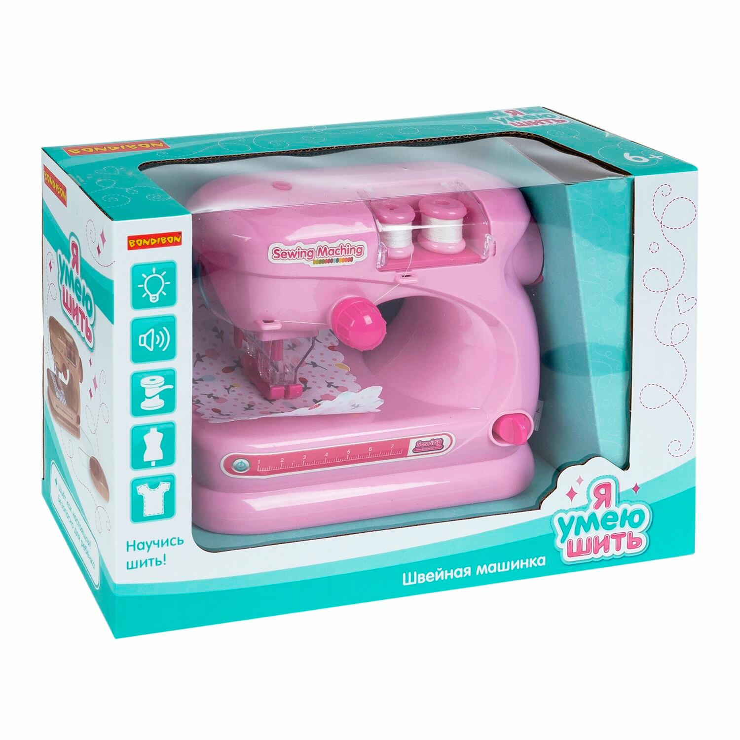 Игр. пластм. швейная машинка Bondibon «Я умею шить», малиновая, BOX информация: