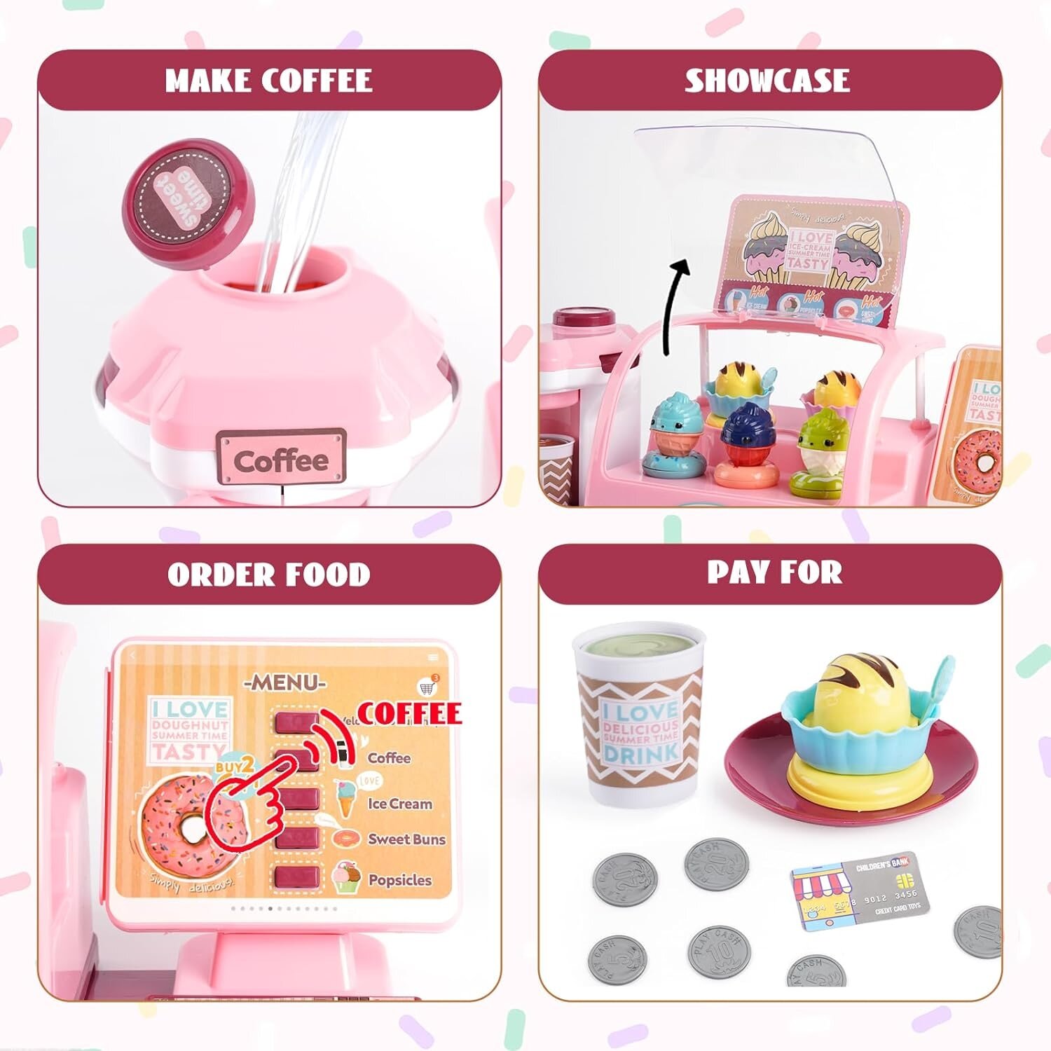Отзывы на Oubaoloon Набор Кафе Мороженое 28 предметов, со светом и звуком, розовый MW1181