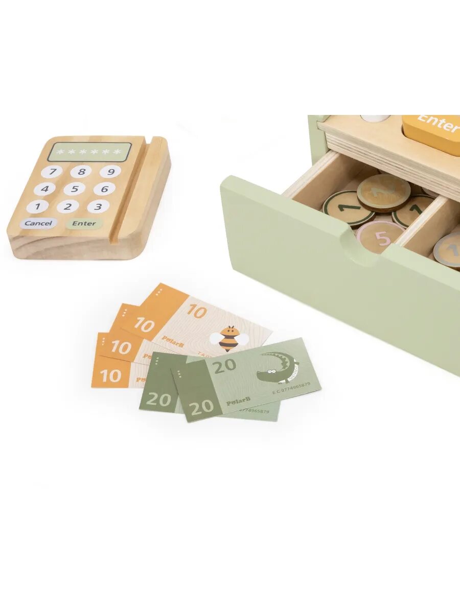 10 цен на Игровой набор касса с аксессуарами деревянная 44244
