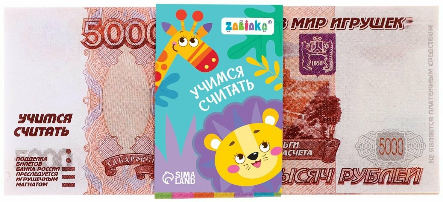 Детский игровой набор денег "Учимся считать", 50 купюр по 5000 рублей, сюжетно-ролевая игра, играем в магазин информация: