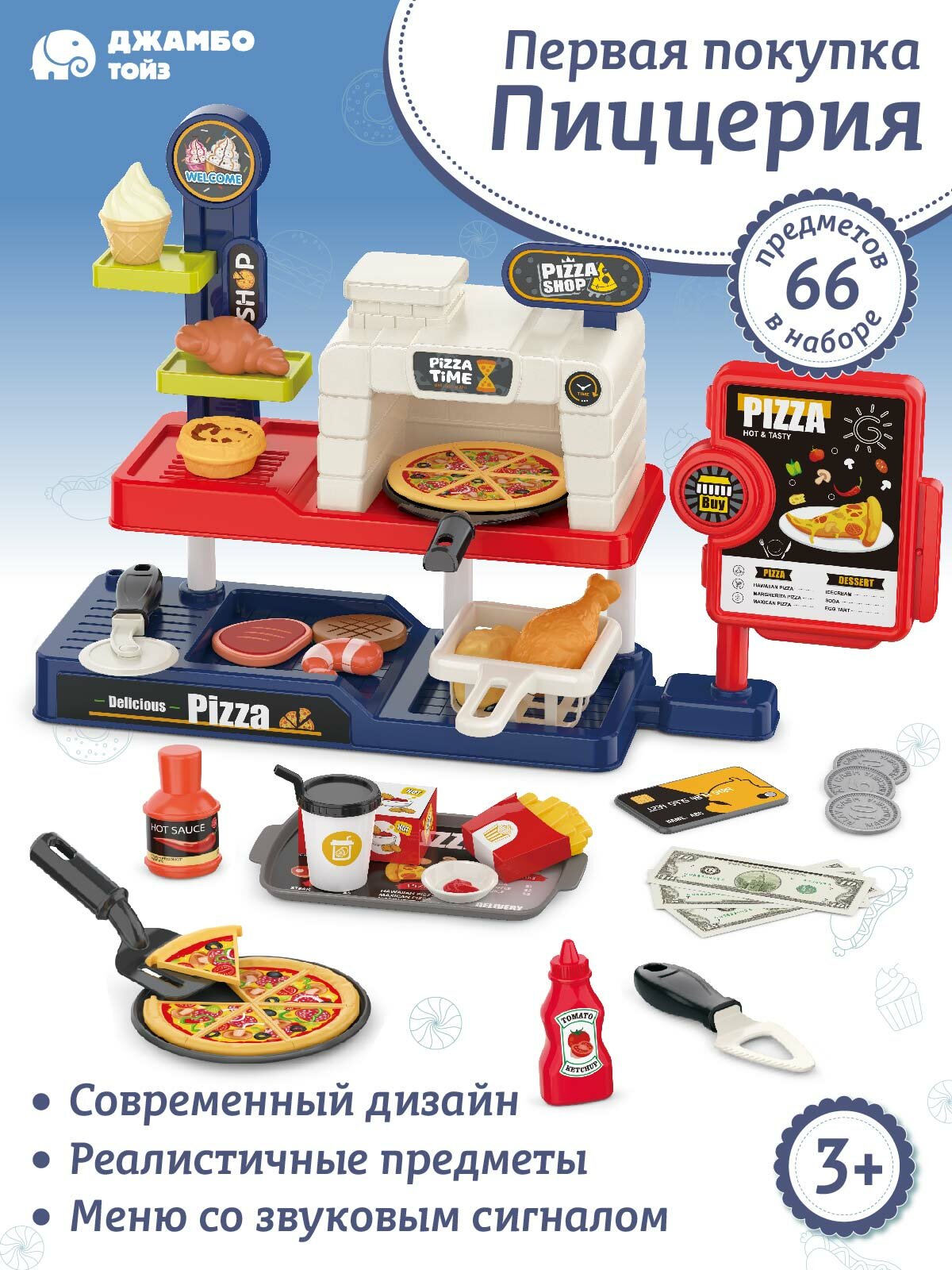 Отзывы на Игровой набор детский, кафе-пиццерия Первая покупка, ресторан быстрого питания/фаст фуд, магазин, звук, JB0213141
