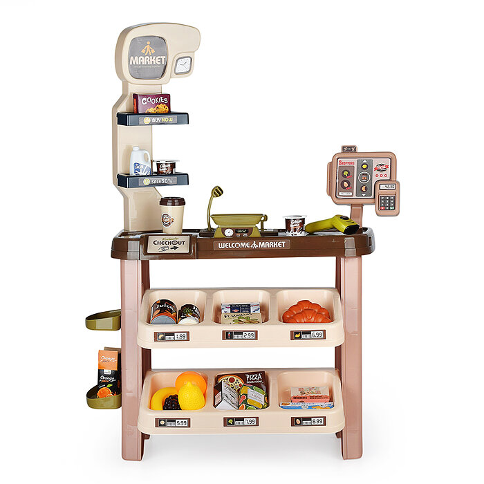 Игровой набор Магазин с кассой в тележке 25712, цвет бежевый