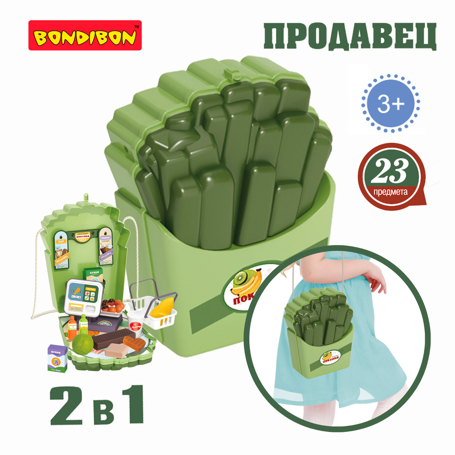 Игровой набор Bondibon Продавец сумочка-чемодан с плитой 23 предмета информация:
