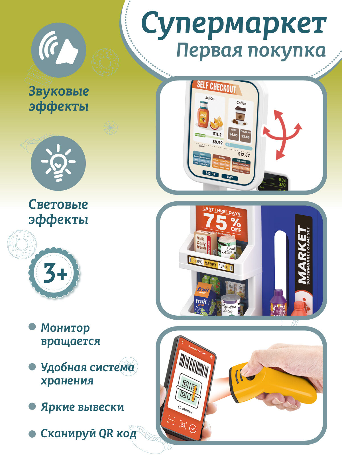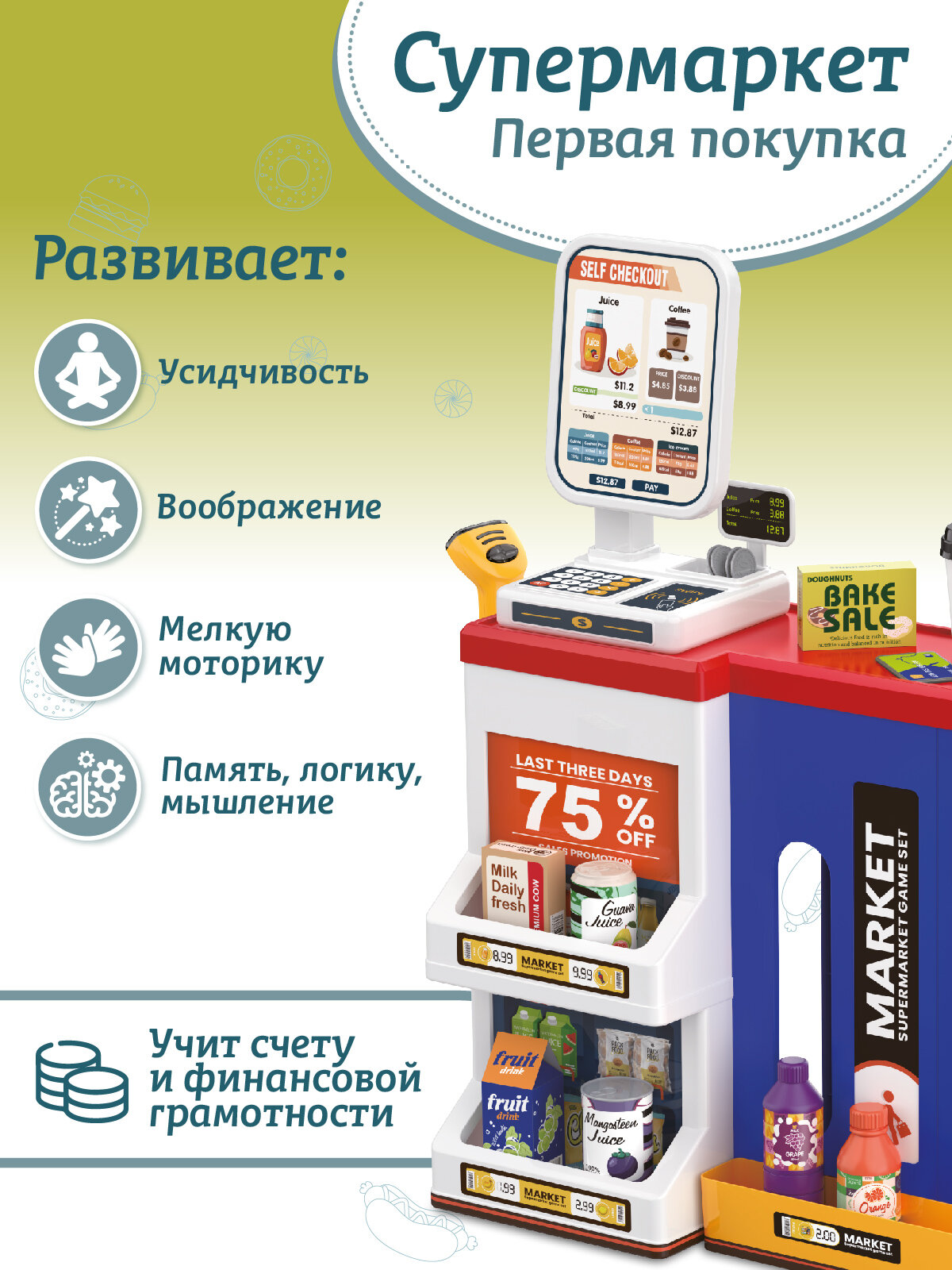 Супермаркет "Первая покупка", игровой набор, сканер/терминал/деньги, 46 предметов, свет/звук, JB0213137