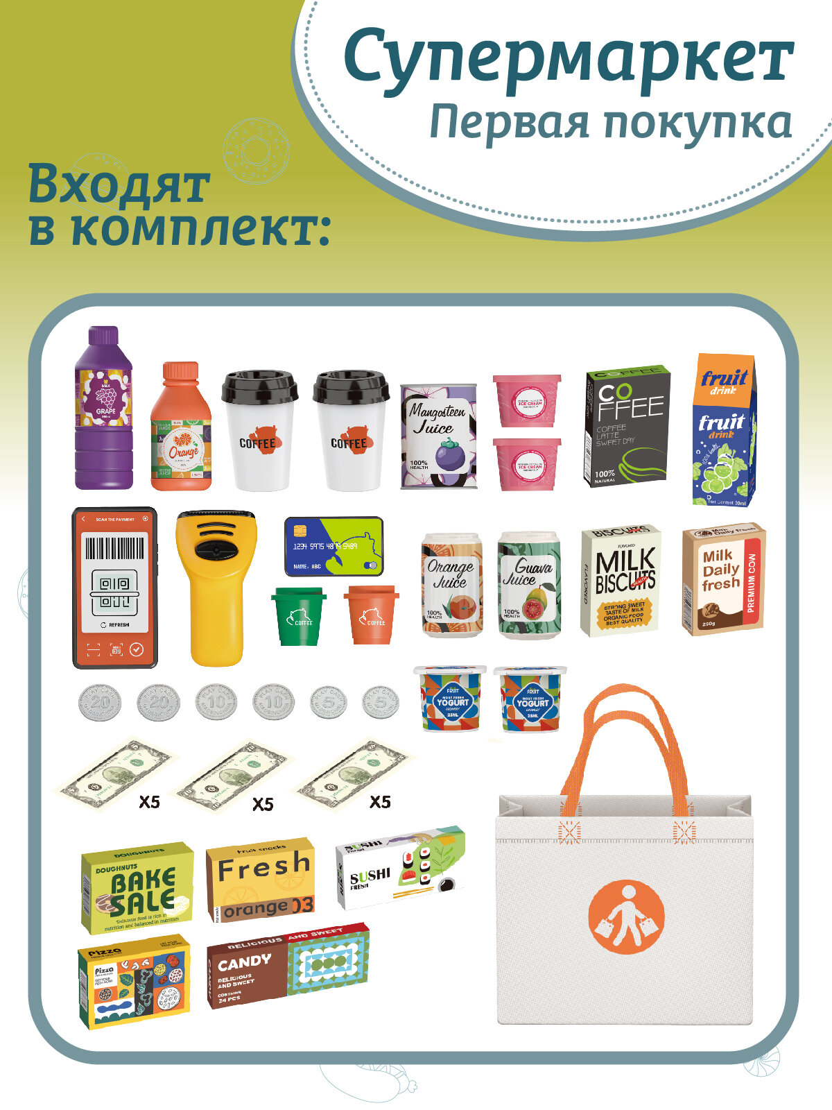 Супермаркет Первая покупка с сумкой, сканер/терминал/деньги, 47 предметов, свет/звук, JB0213143 информация: