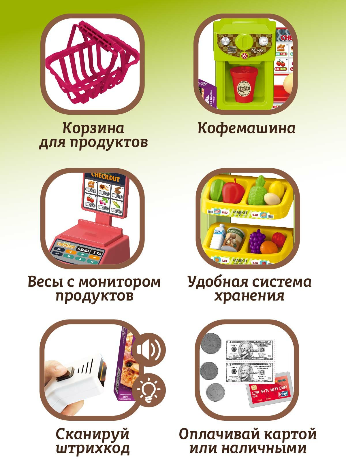Супермаркет Первая покупка с корзинкой, игровой набор, сканер/весы, свет, звук, JB0213097 4 150 ₽