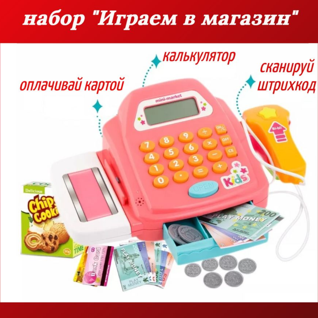 Касса с калькулятором, аксессуарами и банковской картой информация:
