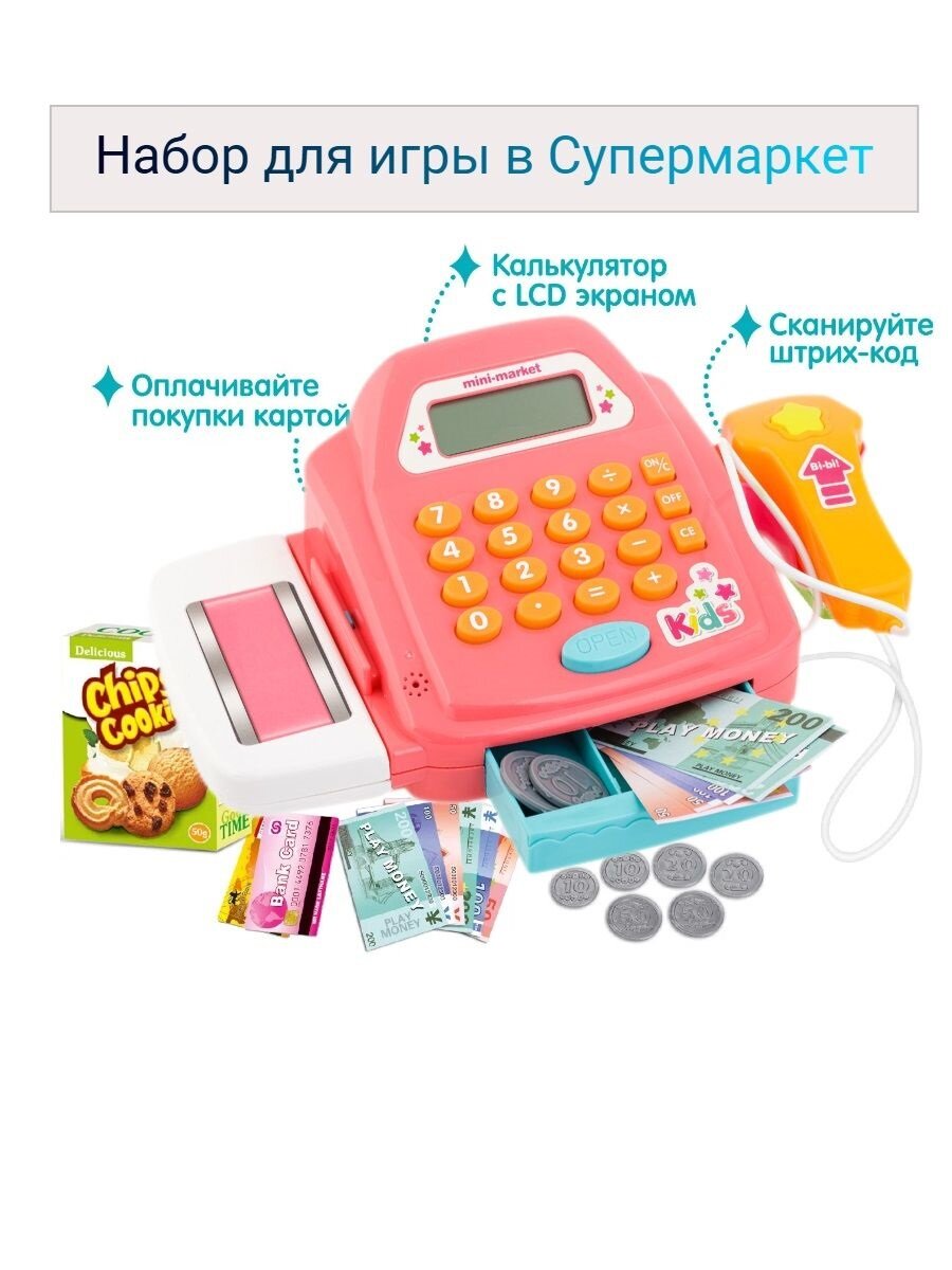 | В комплекте | банковская карта, деньги, кассовый аппарат, корзина, продукты, сканер |