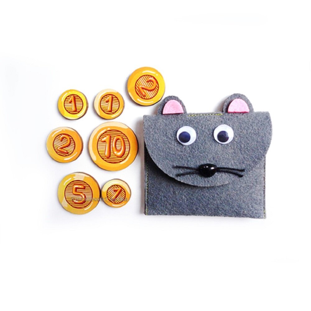 Развивающая игра Smile Decor Кошелек с монетами "Мышка", для игры в магазин, учим счет информация: