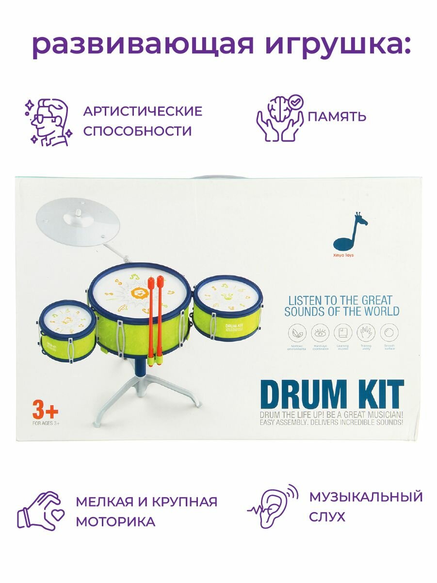 Барабанная установка детская с ударником / Музыкальные инструменты для детей набор