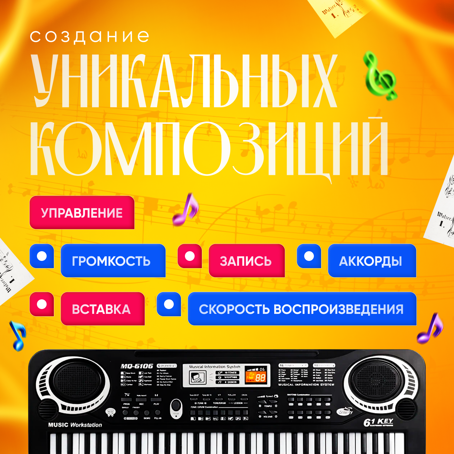 Cинтезатор детский с микрофоном KeyGo, 61 клавиша информация: