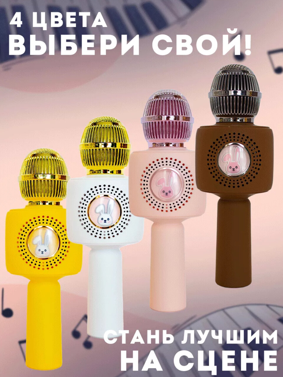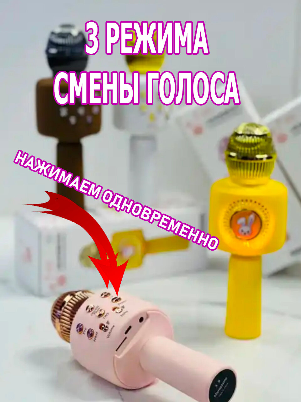 Отзывы на Детский микрофон караоке с колонкой, сменой голоса, подсветкой, кролик белый