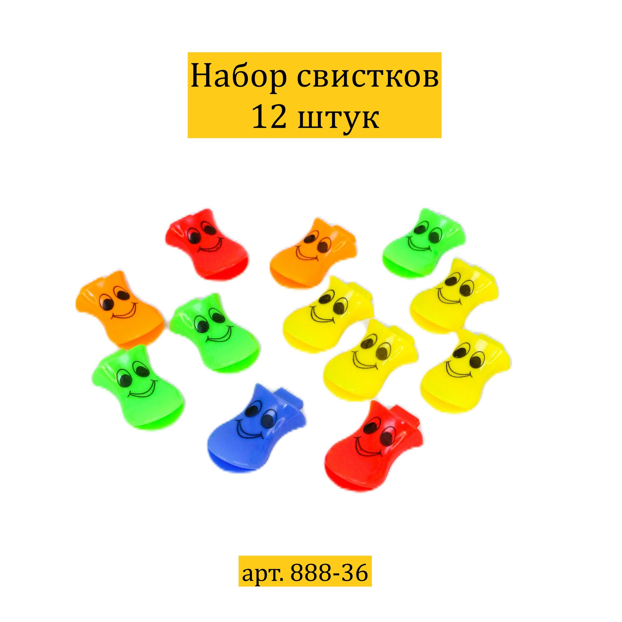 Набор свистков детских "Веселые смайлики" 12 штук 888-36 /Свистулька детская/Свисток игрушечный информация: