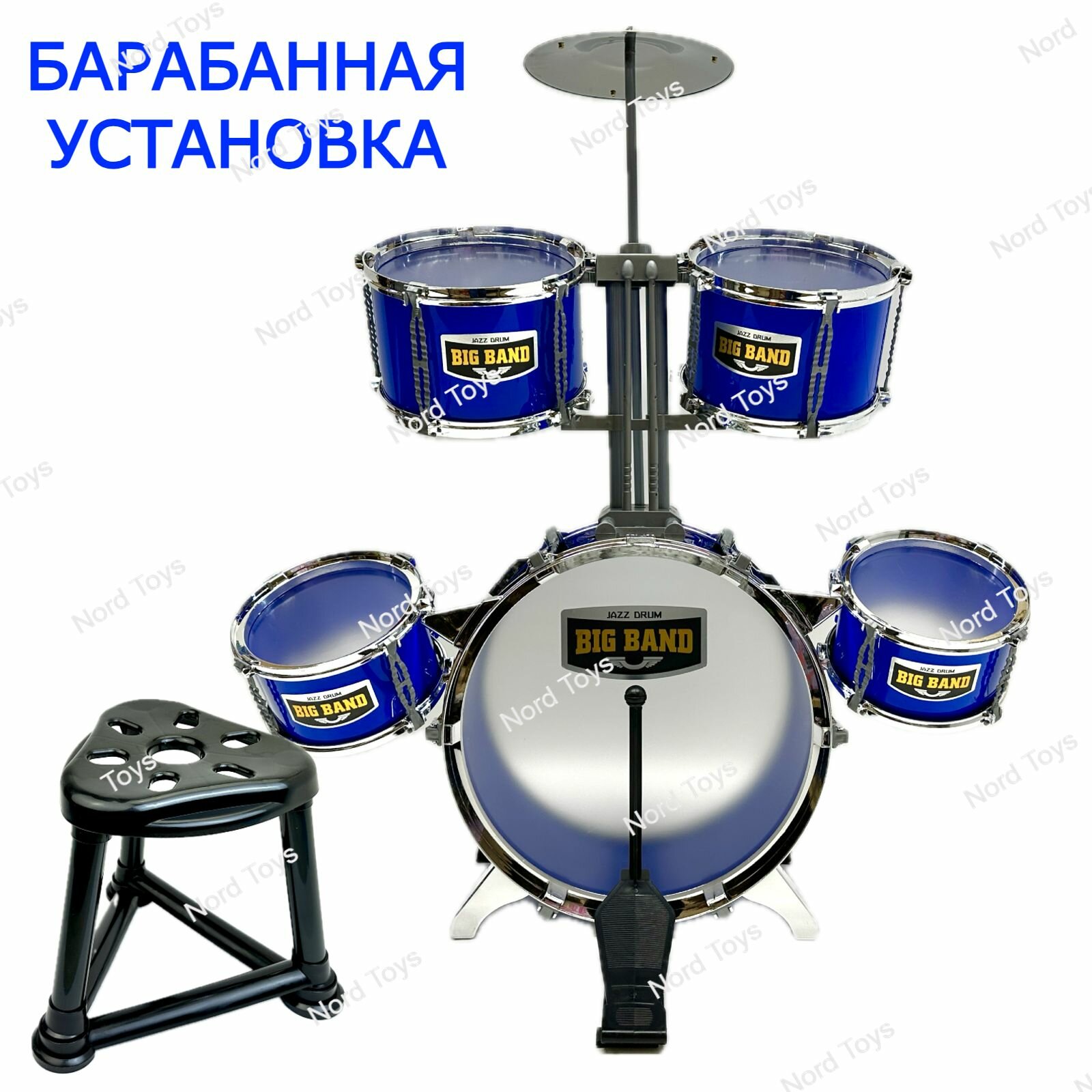 10 цен на Барабан детский с палочками ударная барабанная установка со стулом Jazz Drum, тарелка, палочки, 80х68х36 см