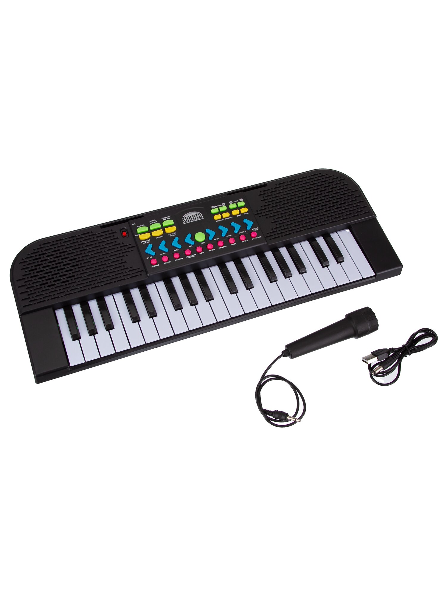 10 цен на Синтезатор детский "Соната" 37 клавиш черный с микрофоном, работает от сети и батареек