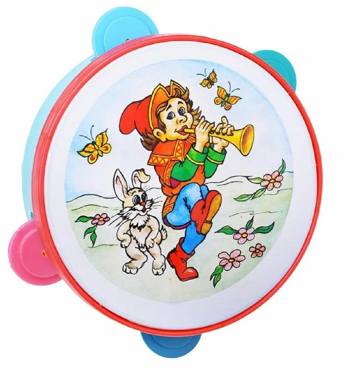 Бубен детский с аппликацией музыкальный инструмент игрушка для мальчика для девочки диаметр 16 см информация: