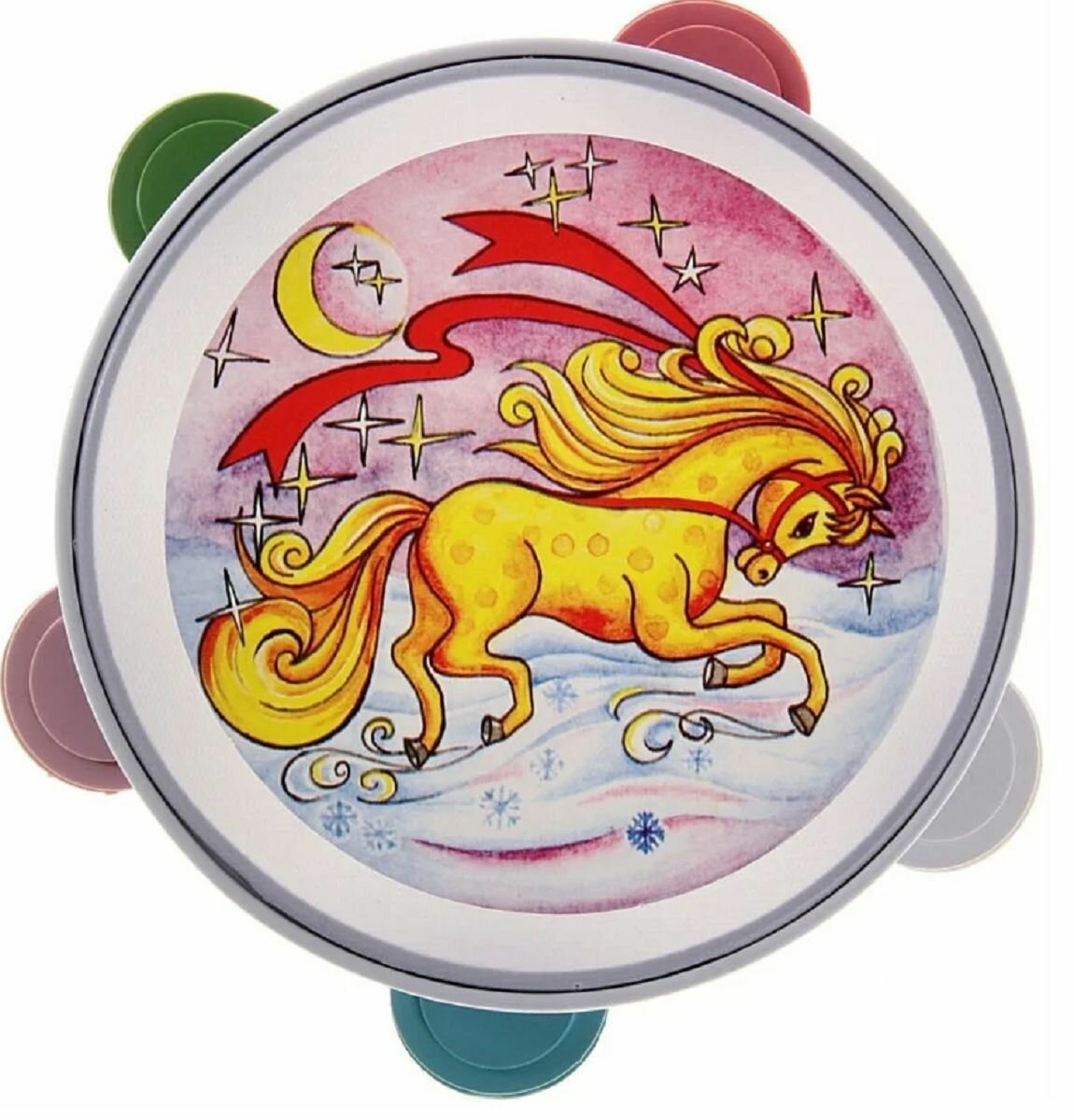 10 цен на Бубен детский с аппликацией музыкальный инструмент игрушка для мальчика для девочки диаметр 16 см