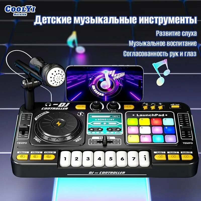 Отзывы на Детский диджейский пульт, с микрофоном, Bluetooth, USB питание, звуковые эффекты
