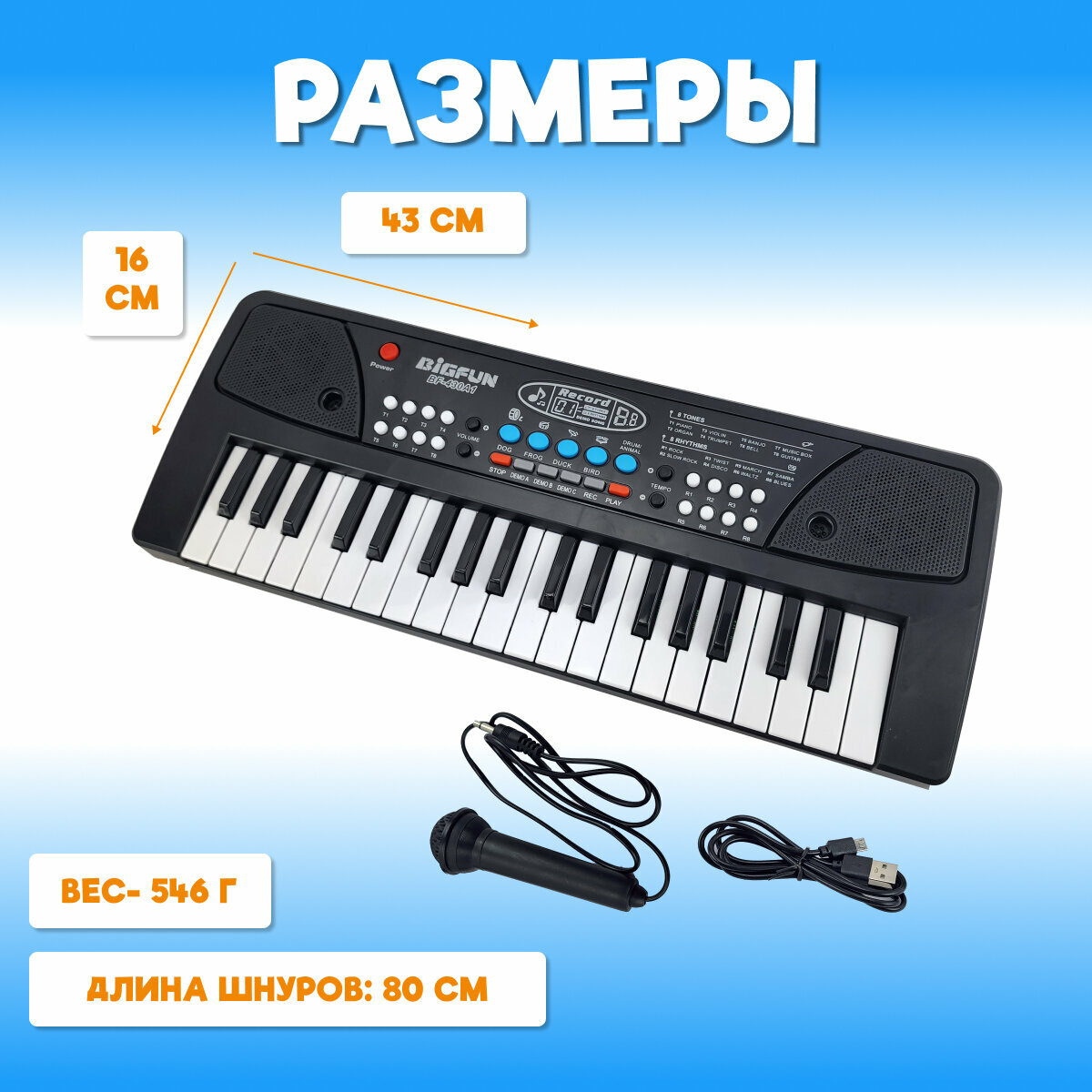 Детское Пианино Bigfun/Синтезатор 37 клавиш с микрофоном, работает от сети и батареек информация: