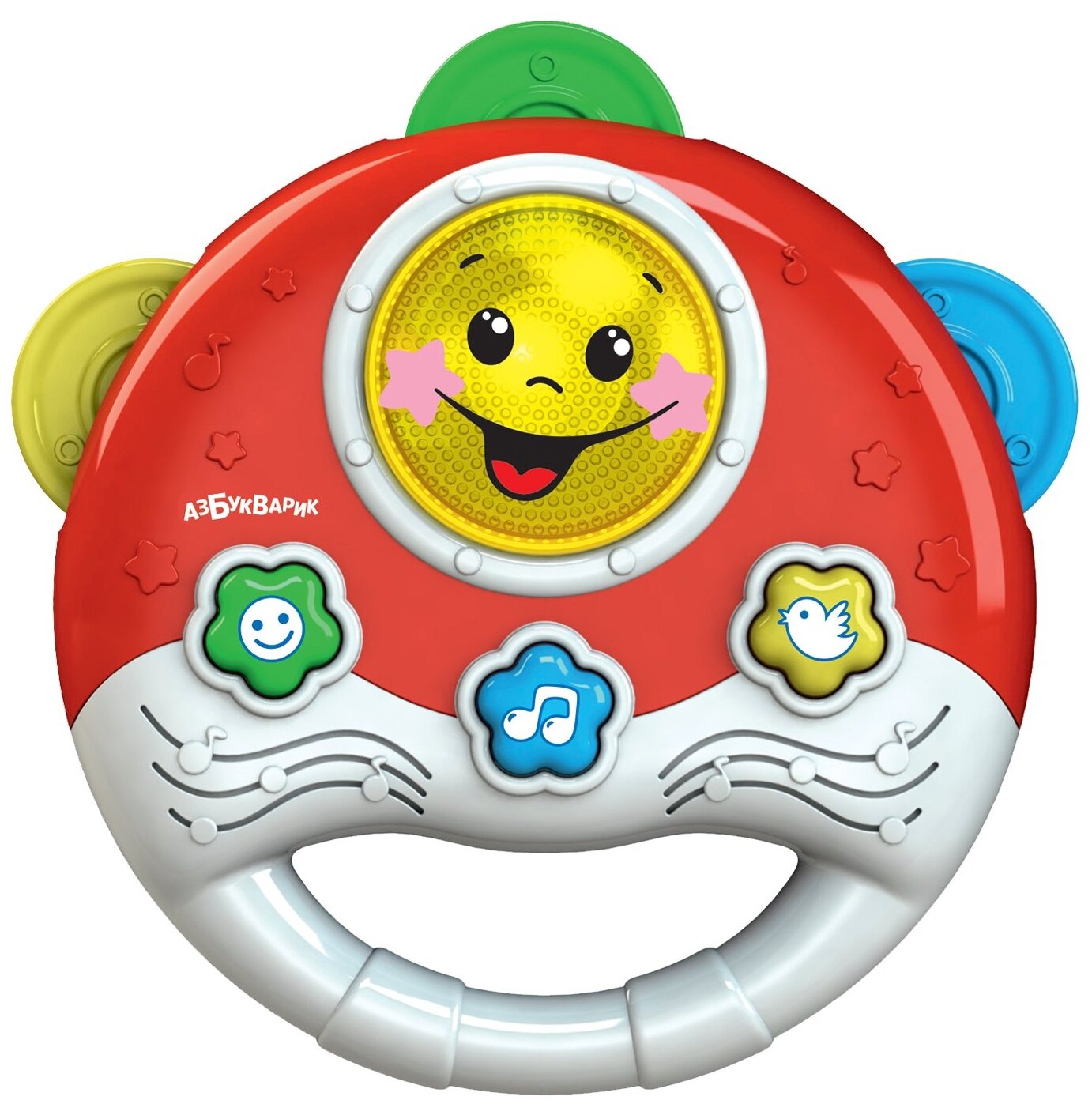 Яркий игрушечный бубен подарит малышу отличное настроение и поможет ему раскрыть музыкальный талант! информация: