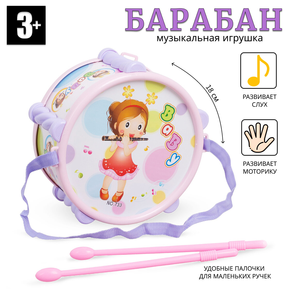 Детская музыкальная игрушка барабан (733А-33) информация: