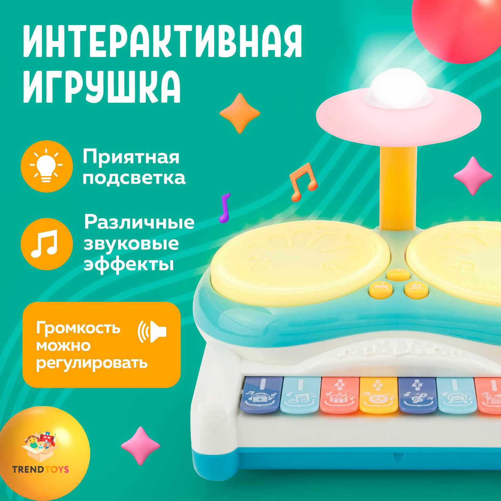 0 отзывов, средняя оценка 0. Чтобы купить «Пианино детское музыкальное TrendToys Развивающее с барабанами для малышей» по лучшей цене мы сканируем авито, алиэкспресс, маркет, озон, савеловский, плеер, горбушку, беру, официальные сайты и находим минимальную. Администрация не несет ответсвенность актуальность цен на Пианино детское музыкальное TrendToys Развивающее с барабанами для малышей, более подробно узнавайте на сайте магазина.