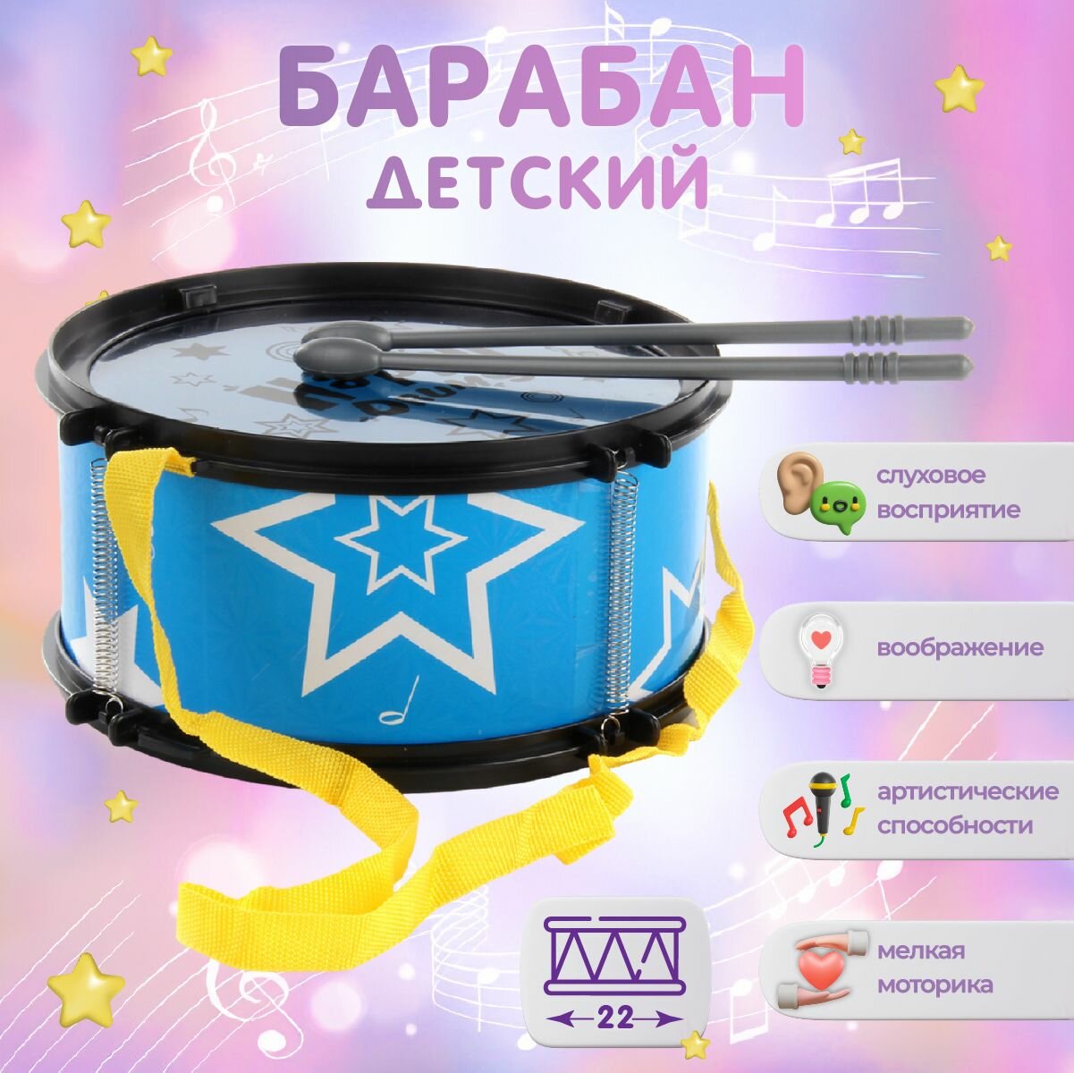 Детский музыкальный барабан с палочками 22 см, Veld Co 108647 информация: