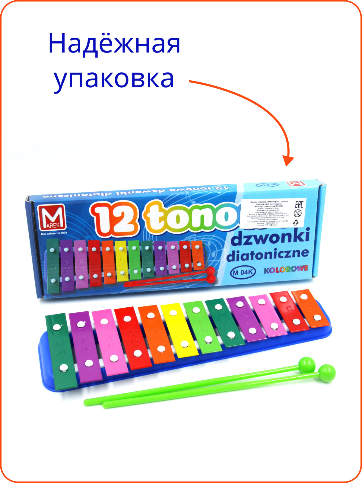 Детский музыкальный инструмент Металлофон Marek 12 тонов разноцветный информация: