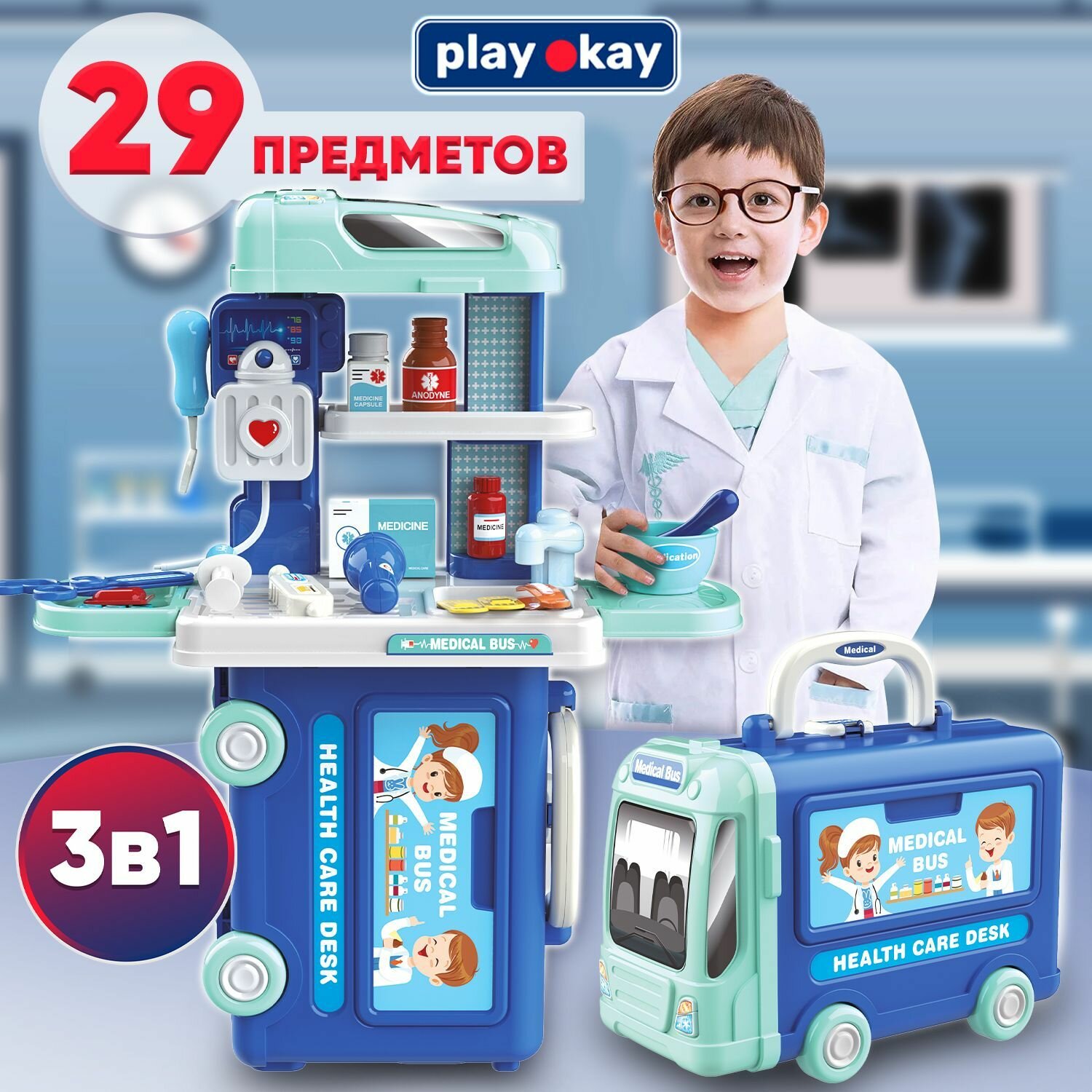 Набор доктора детский в чемодане игровой Play Okay 3в1 с аксессуарами для мальчиков и девочек / сюжетно ролевая игра, 29 предметов информация: