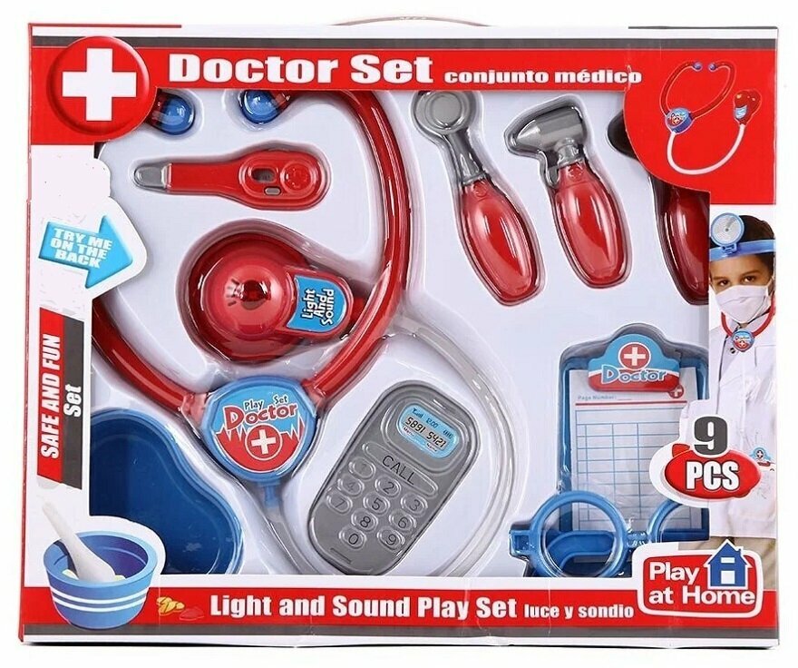 10 цен на Детский игровой набор доктора со звуком и светом (9 предметов) в коробке, 661-202