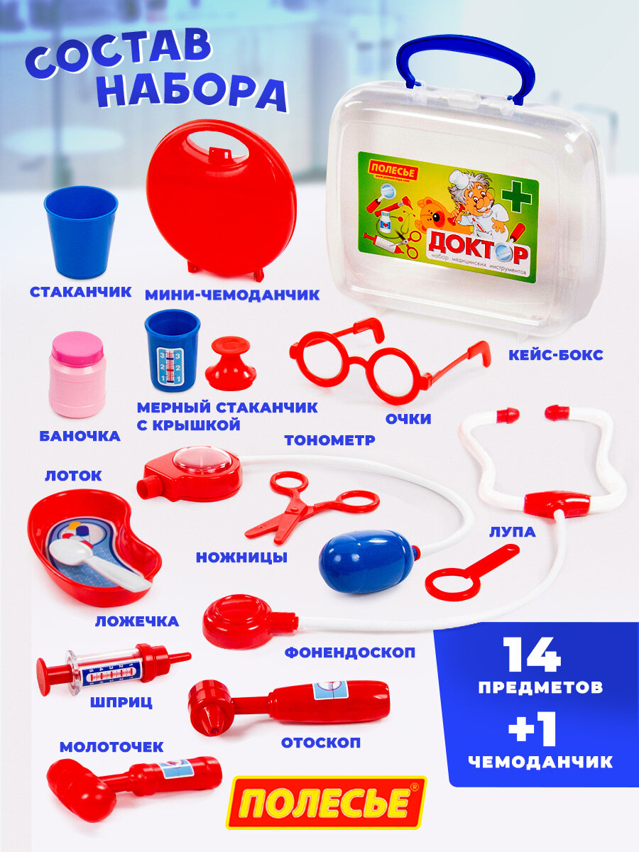 10 цен на Набор доктора "Доктор №3" Полесье, в чемоданчике, 14 предметов