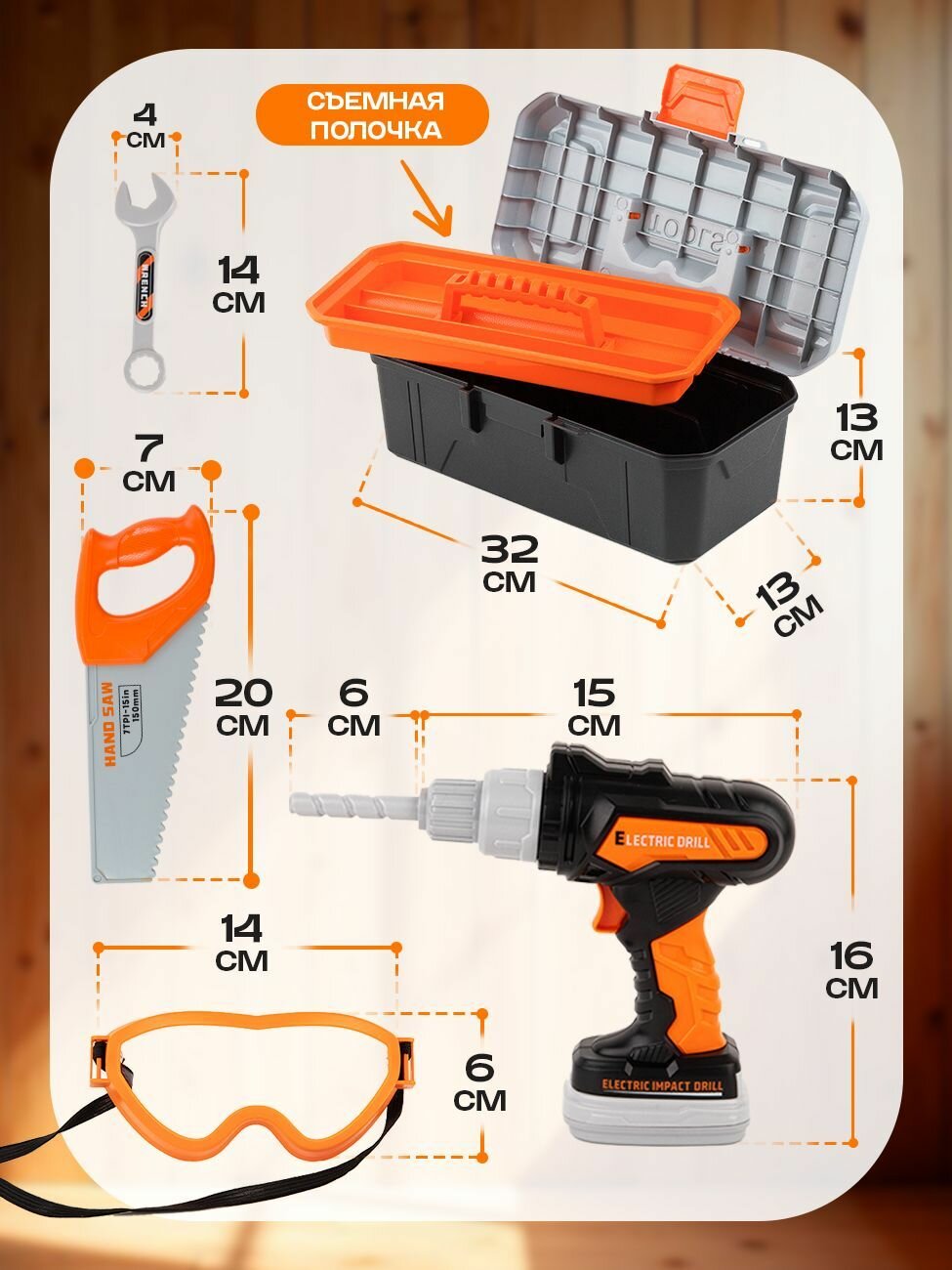 Отзывы на Набор инструментов детский с электрическим шуруповертом 43 предмета