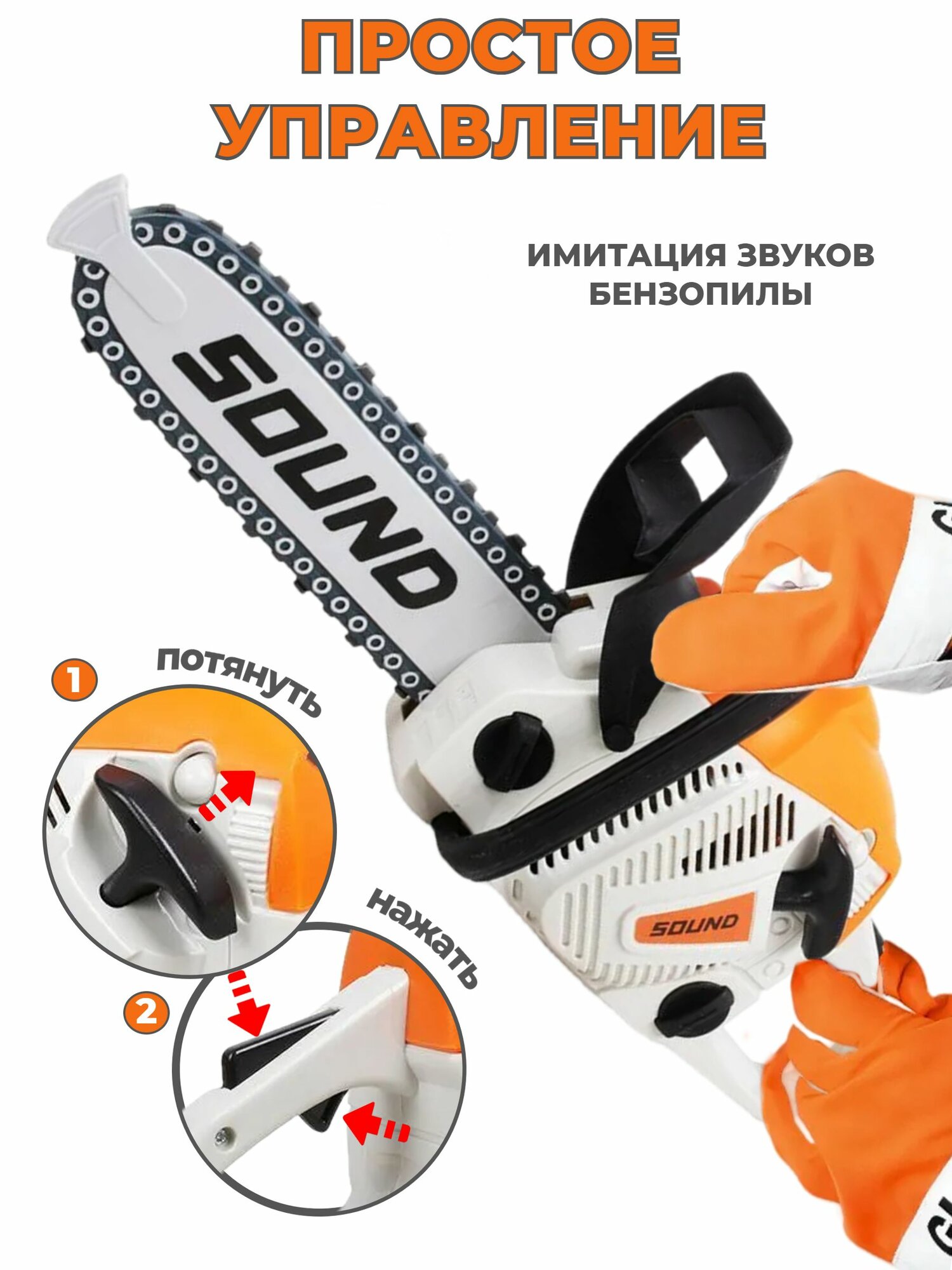 Отзывы на Игрушечная бензопила детская на батарейках игрушка с аксессуарами, звук мотора, вращение цепи, строительный инструмент