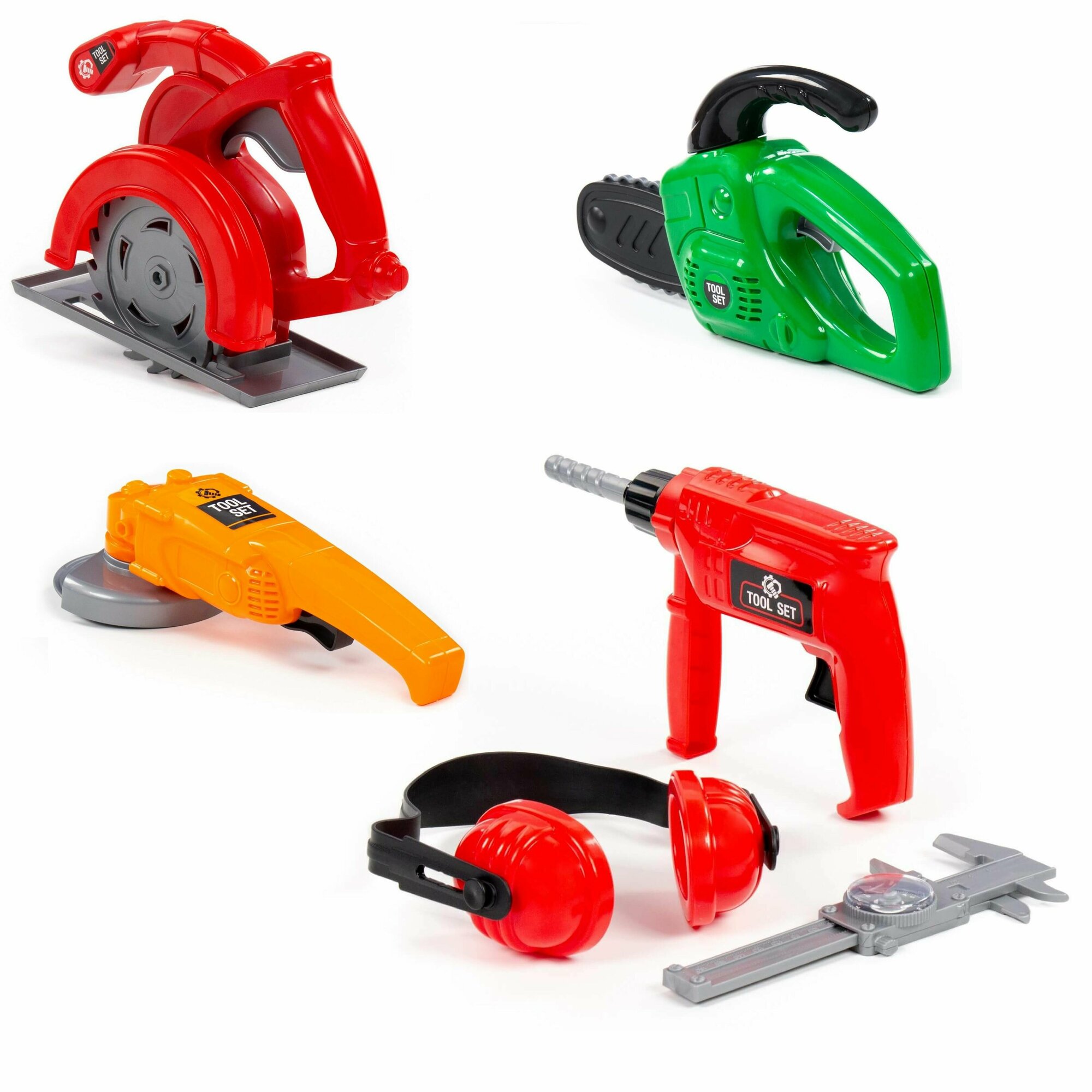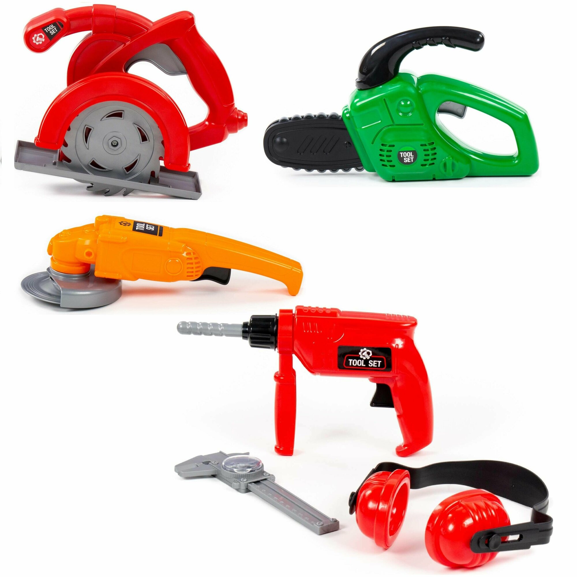 Отзывы на Набор 4-х игрушечных инструментов Полесье для малышей с механическим вращением (болгарка, циркулярка, перфоратор с наушниками, бензопила)