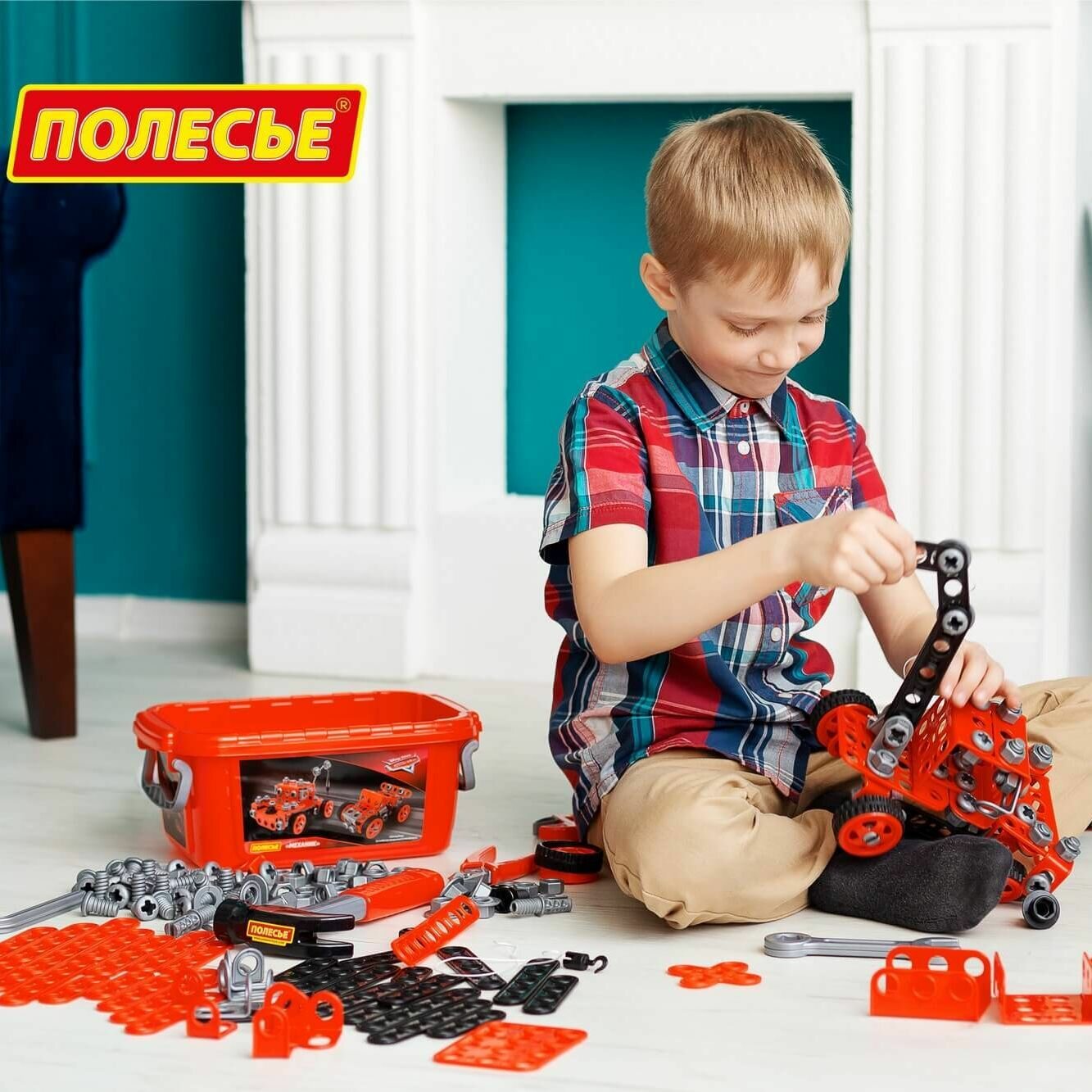 Отзывы на Чемоданчик мастера - детские инструменты, винты, гайки, пластины для закручивания - 152 эл. в контейнере с машинкой-эвакуатором / Полесье