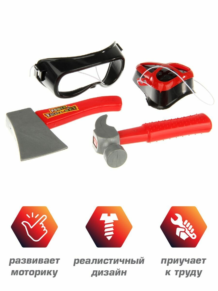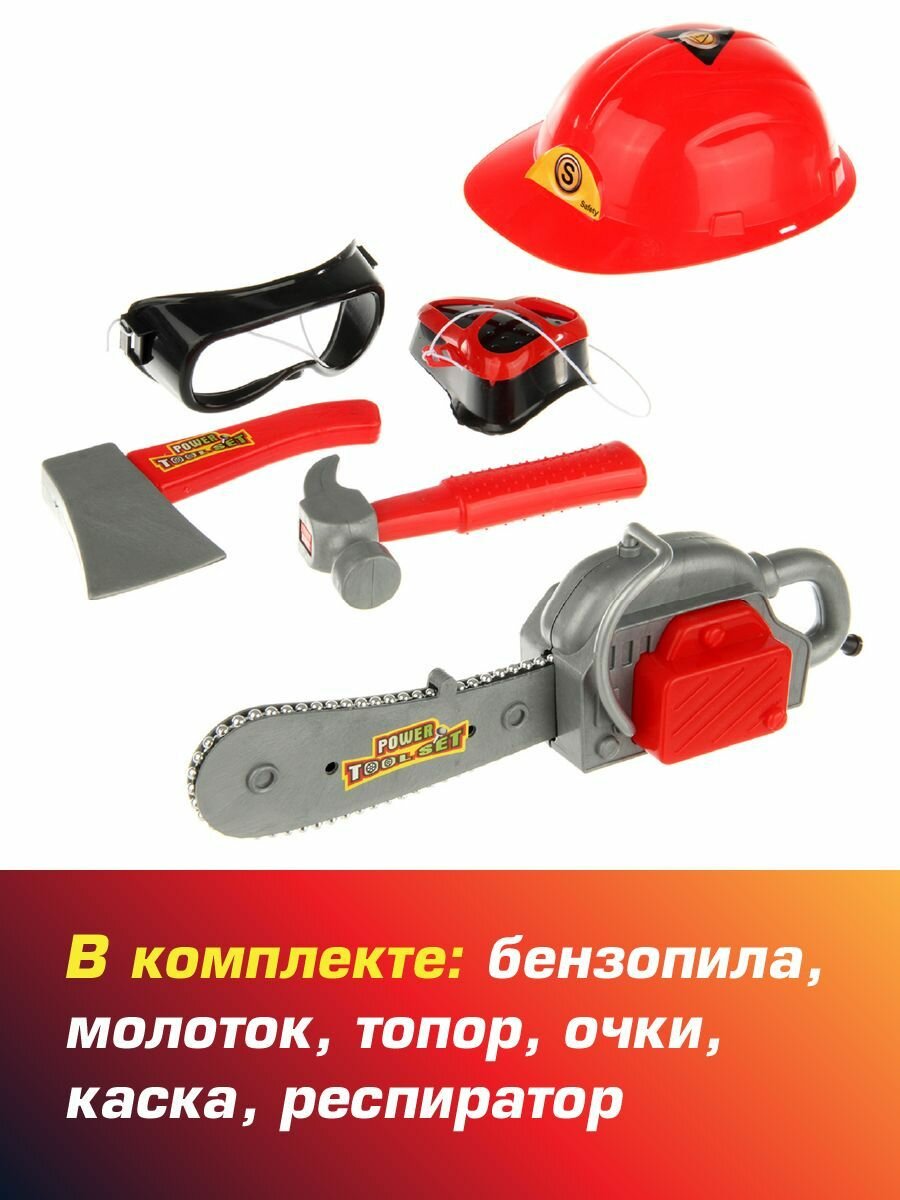 10 цен на Игровой набор инструментов для мальчиков 6 предметов, Veld Co / Инструменты для детей / Бензопила, молоток, каска