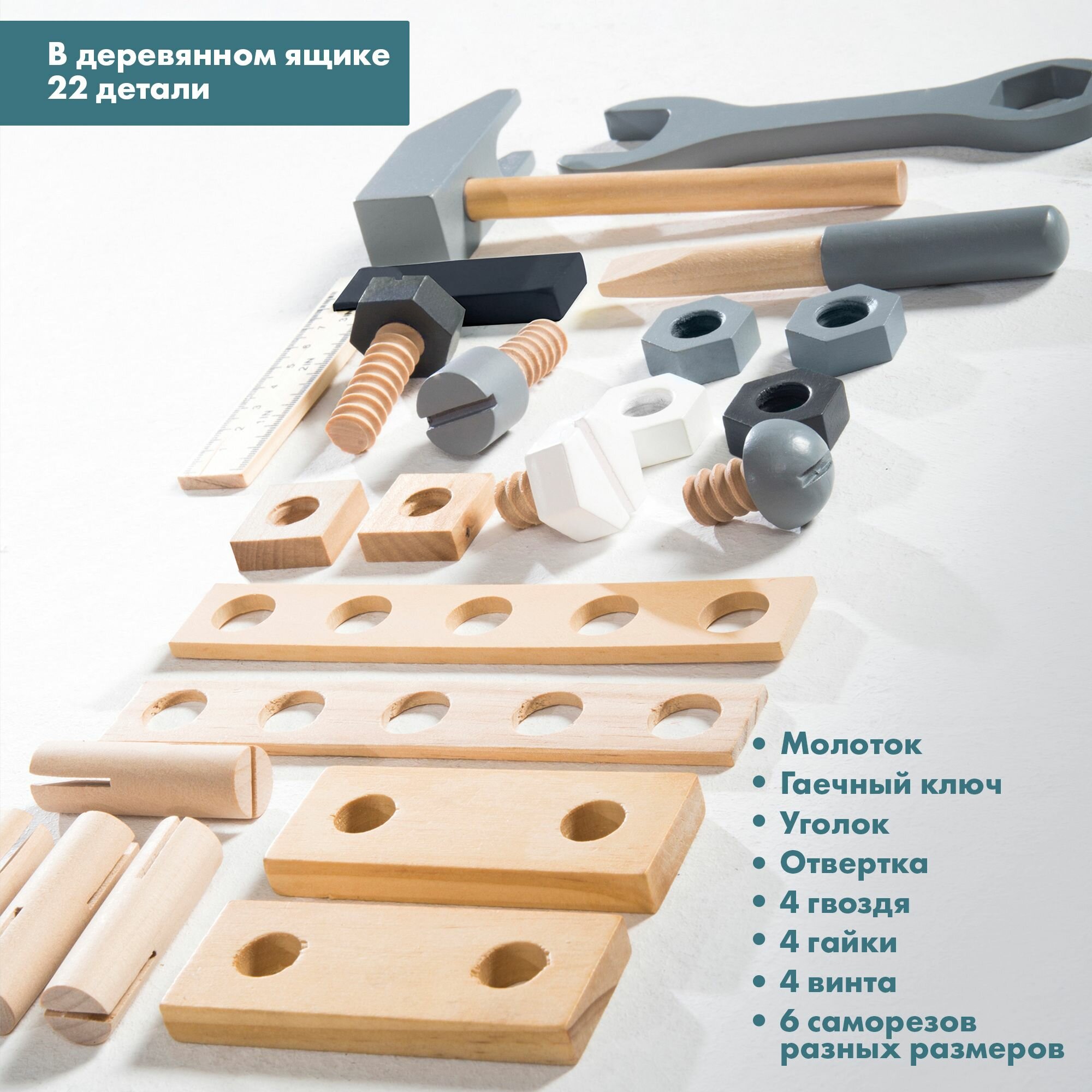 Набор инструментов для мальчика детский строительный, набор строителя в ящике, деревянный конструктор, деревянные игрушки для малышей