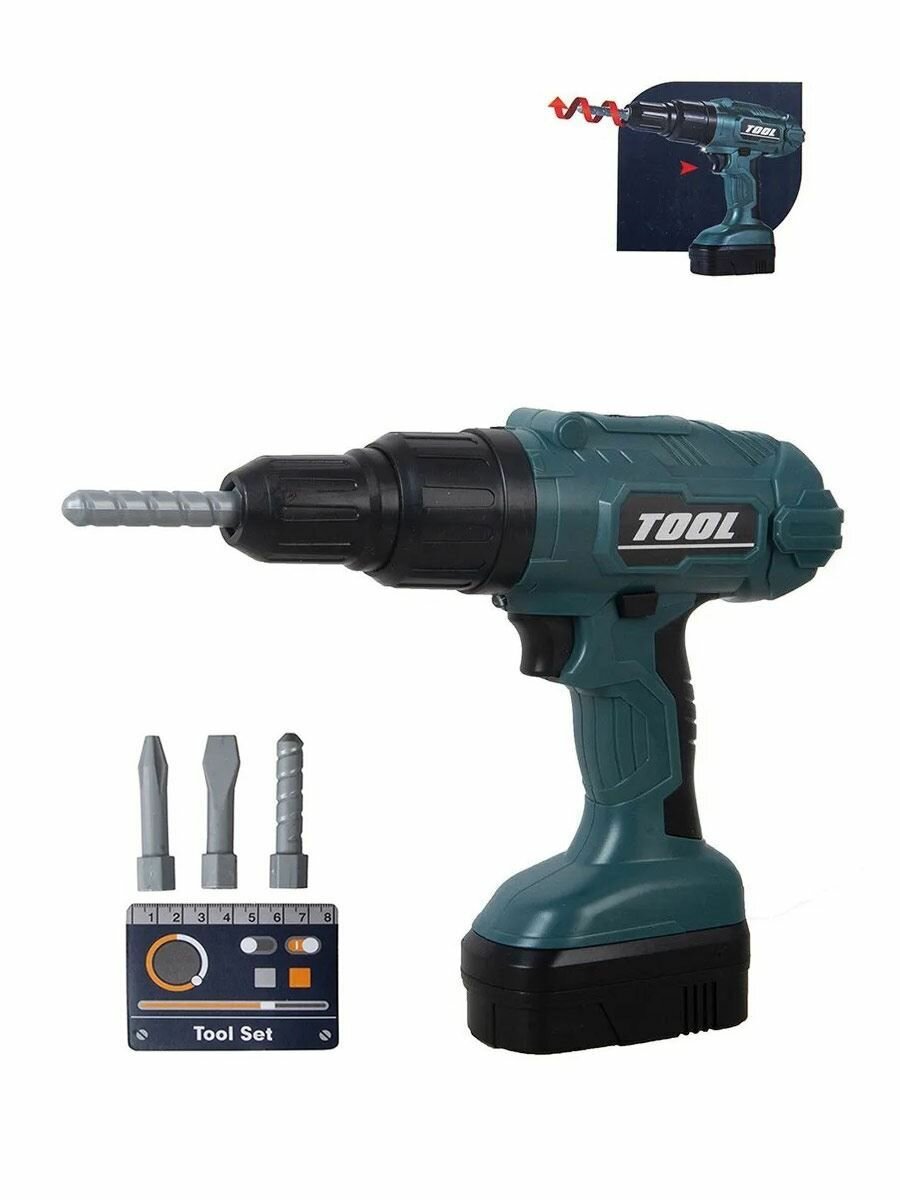 Дрель Happy Time с насадками (свет, вращение) черно-зеленая T112 информация: