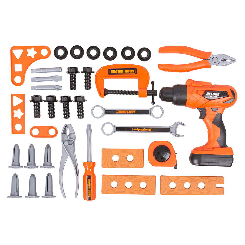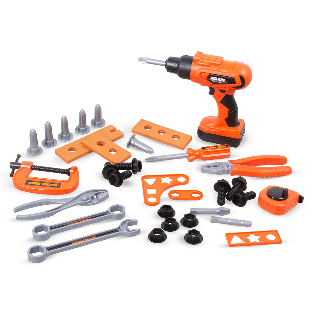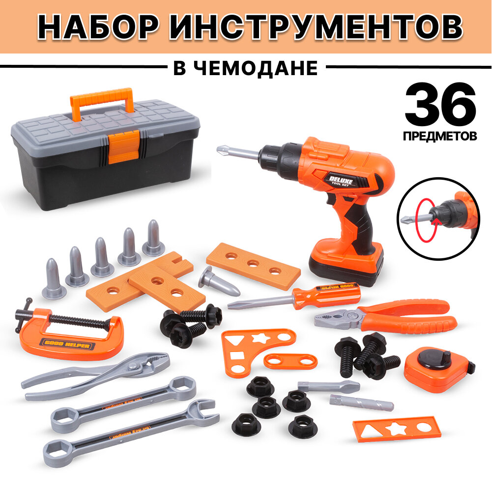 Отзывы на Детский набор инструментов с дрелью на батарейках, 36 предметов, в чемодане (HB3233-3)