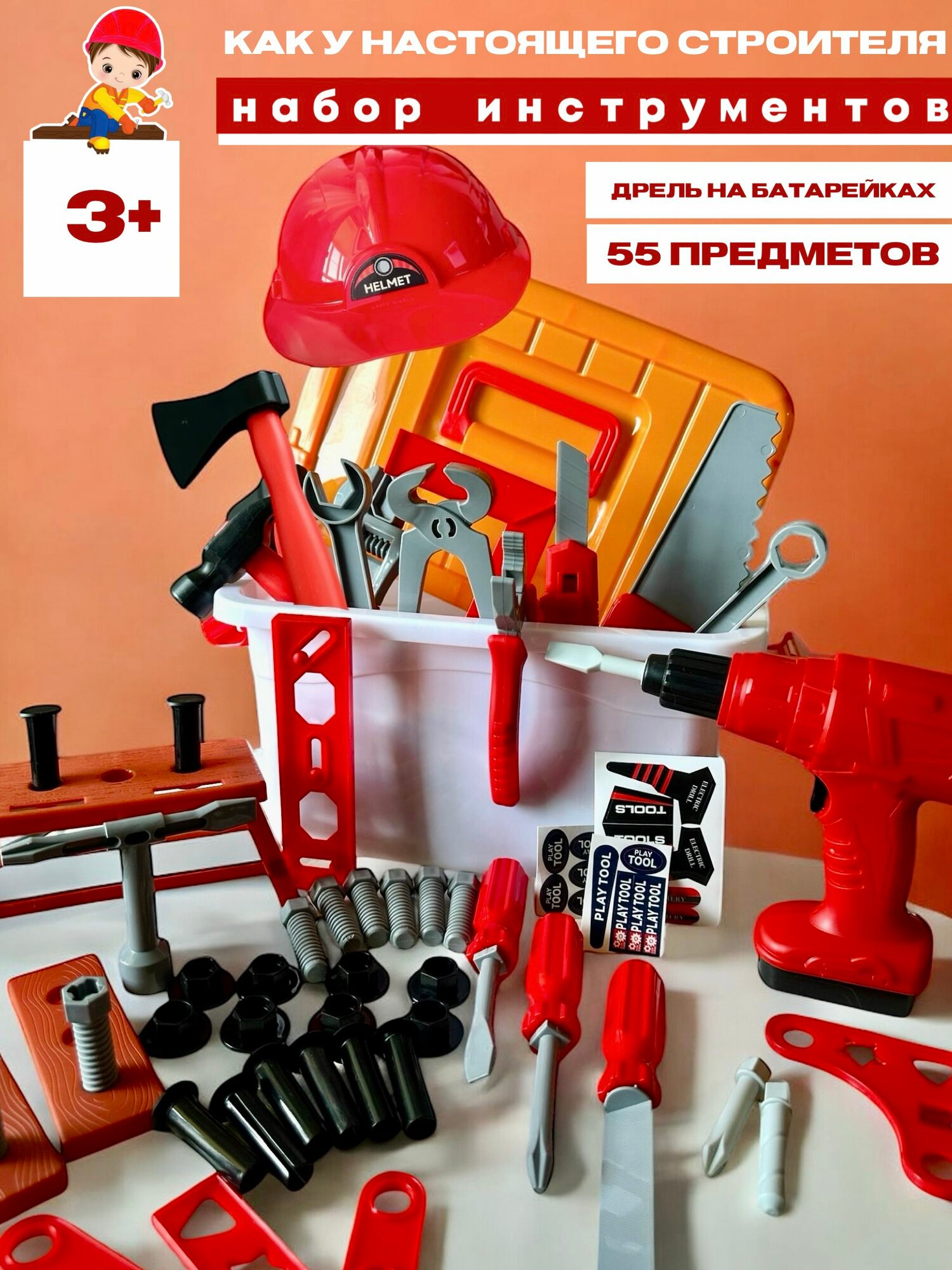 Отзывы на Детский игровой набор инструментов/строителя для мальчика, 55 предметов