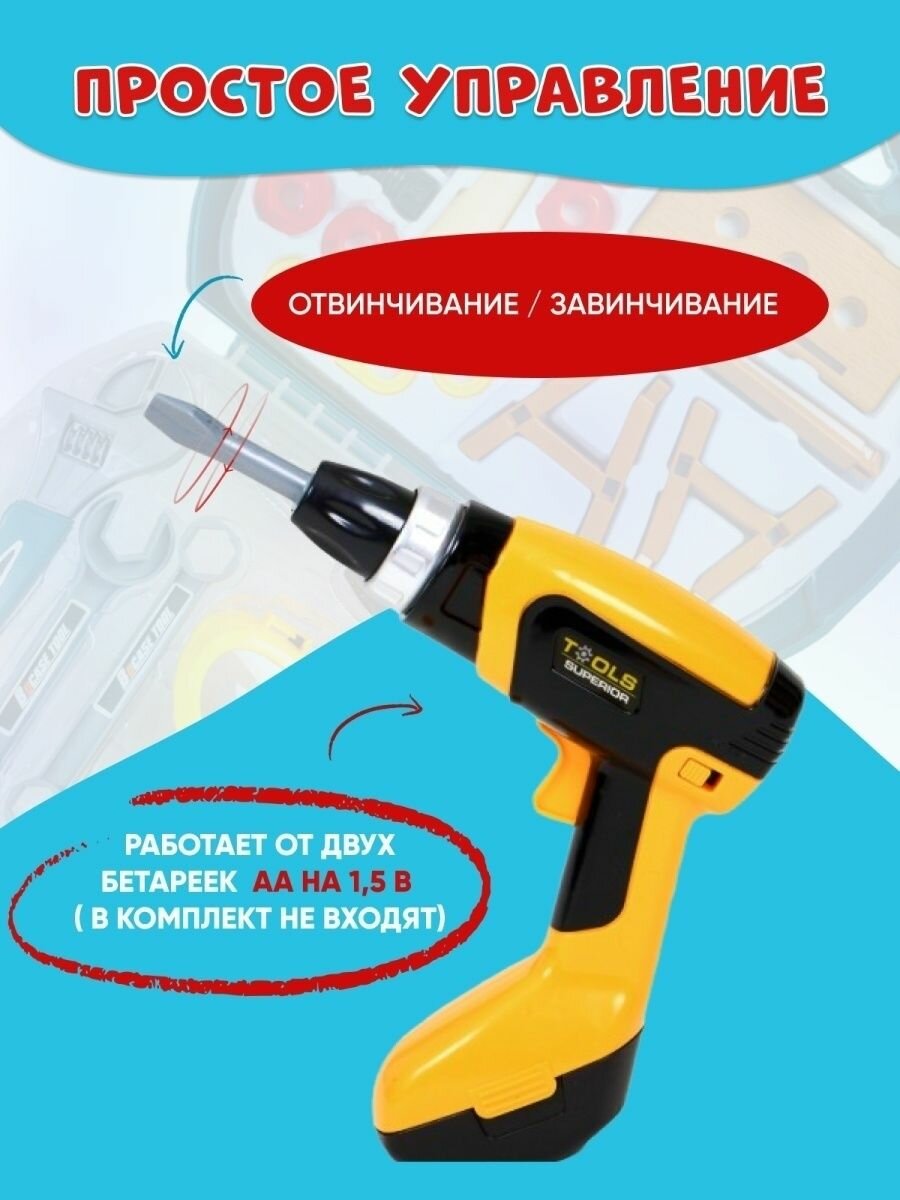 Отзывы на Набор инструментов детский TrendToys с шуруповертом в чемоданчике, 26 предметов