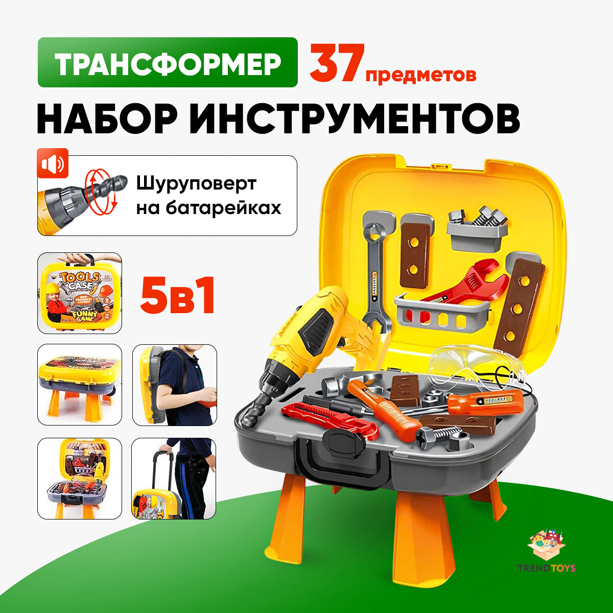 10 цен на Набор инструментов детский TrendToys с шуруповёртом в чемодане, 37 предметов, игровой набор строителя