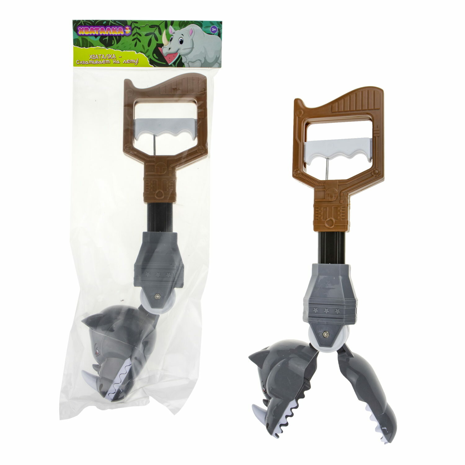 10 цен на 1TOY Хваталка "Носорог" 34*9 см, игрушки для улицы, для мальчиков, для девочек