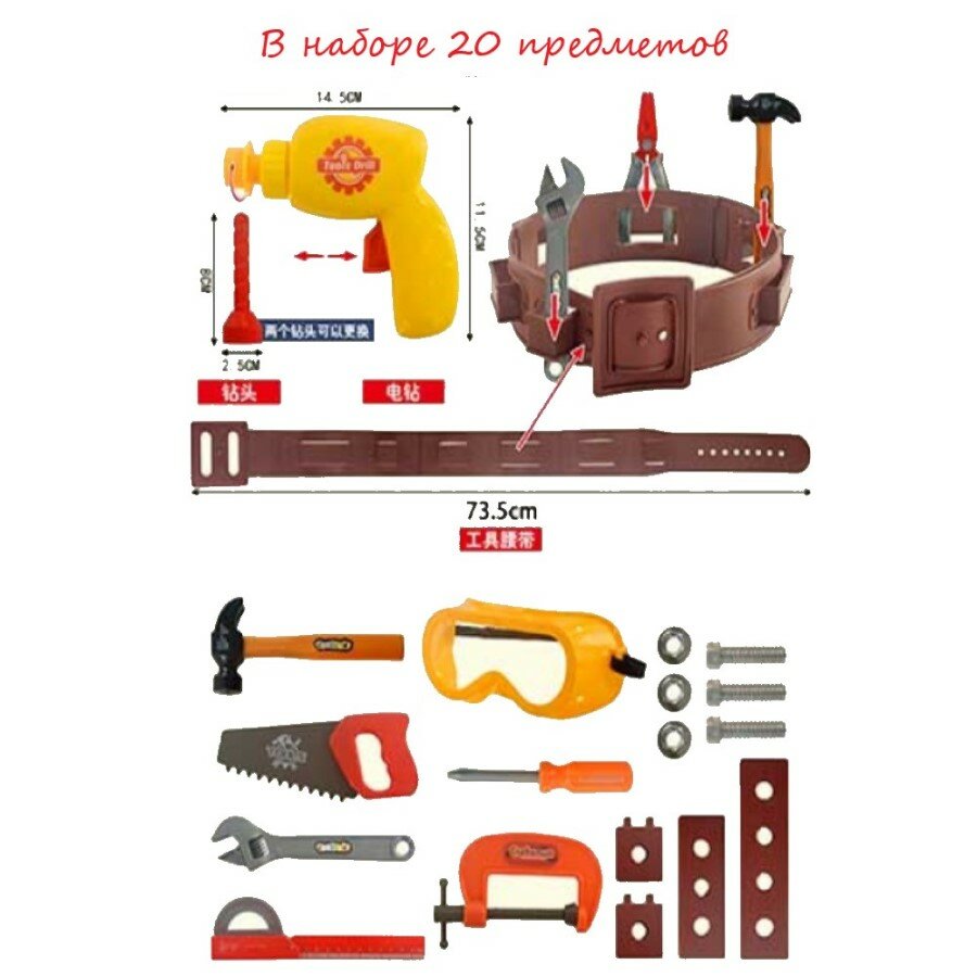 10 цен на Игровой набор Строительных Инструментов, в пакете, 20 предметов, NH550E /Детский строительный набор/Набор строителя