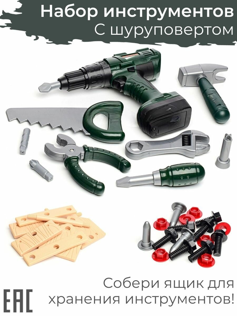10 цен на Детский набор строительных инструментов с шуруповертом для мальчика