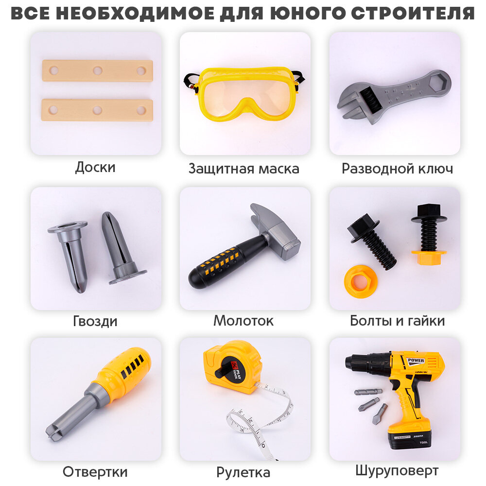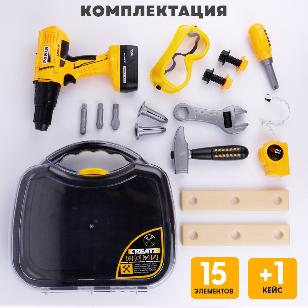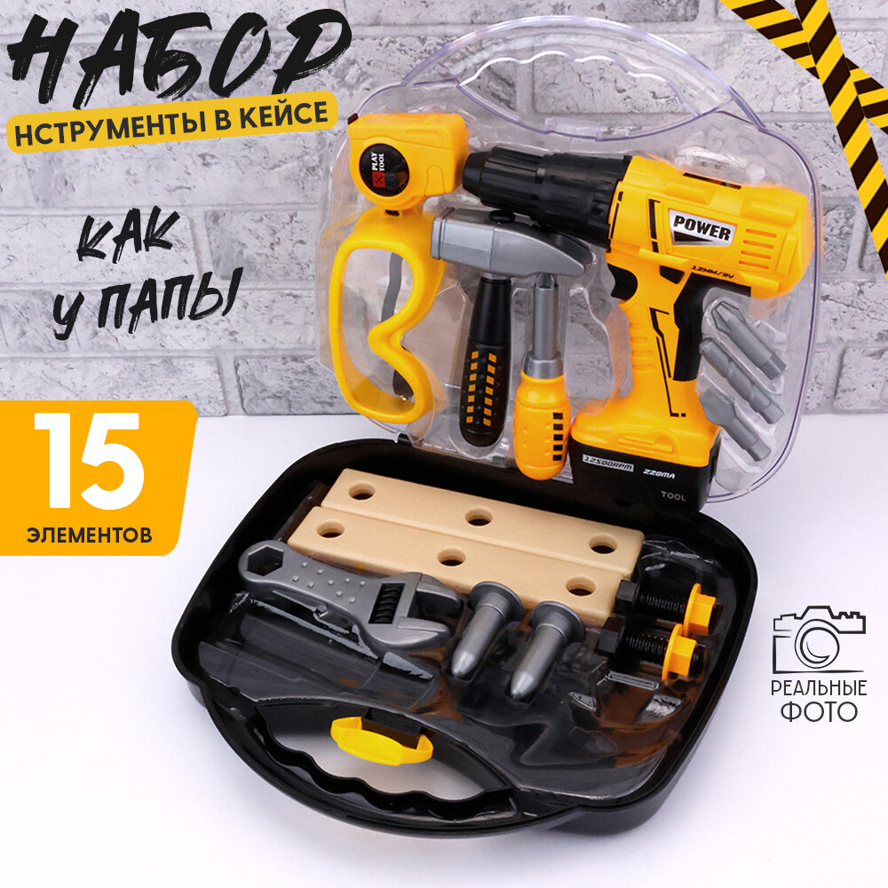 10 цен на Набор игрушечных электроинструментов "Универсальный мастер", желтый, 15 предметов