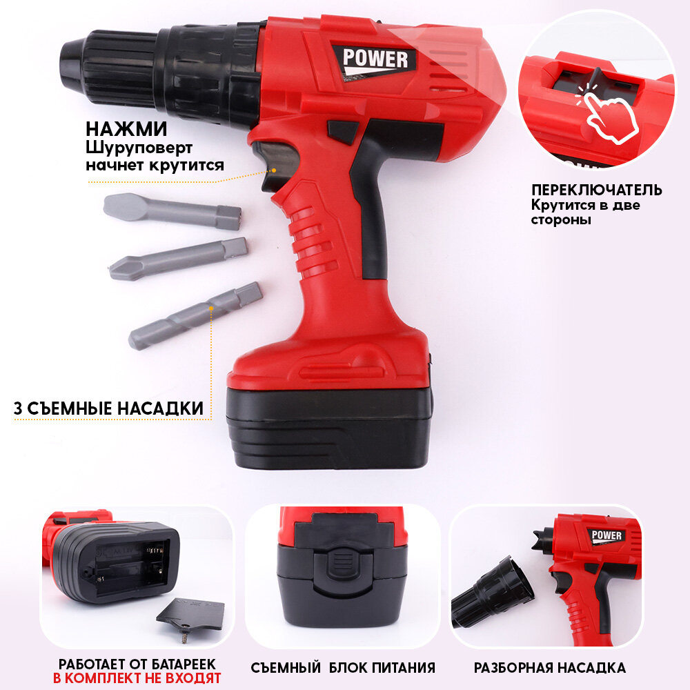 Набор инструментов "Как у папы", с дрелью, 24 предмета, от 3 до 7 лет информация: