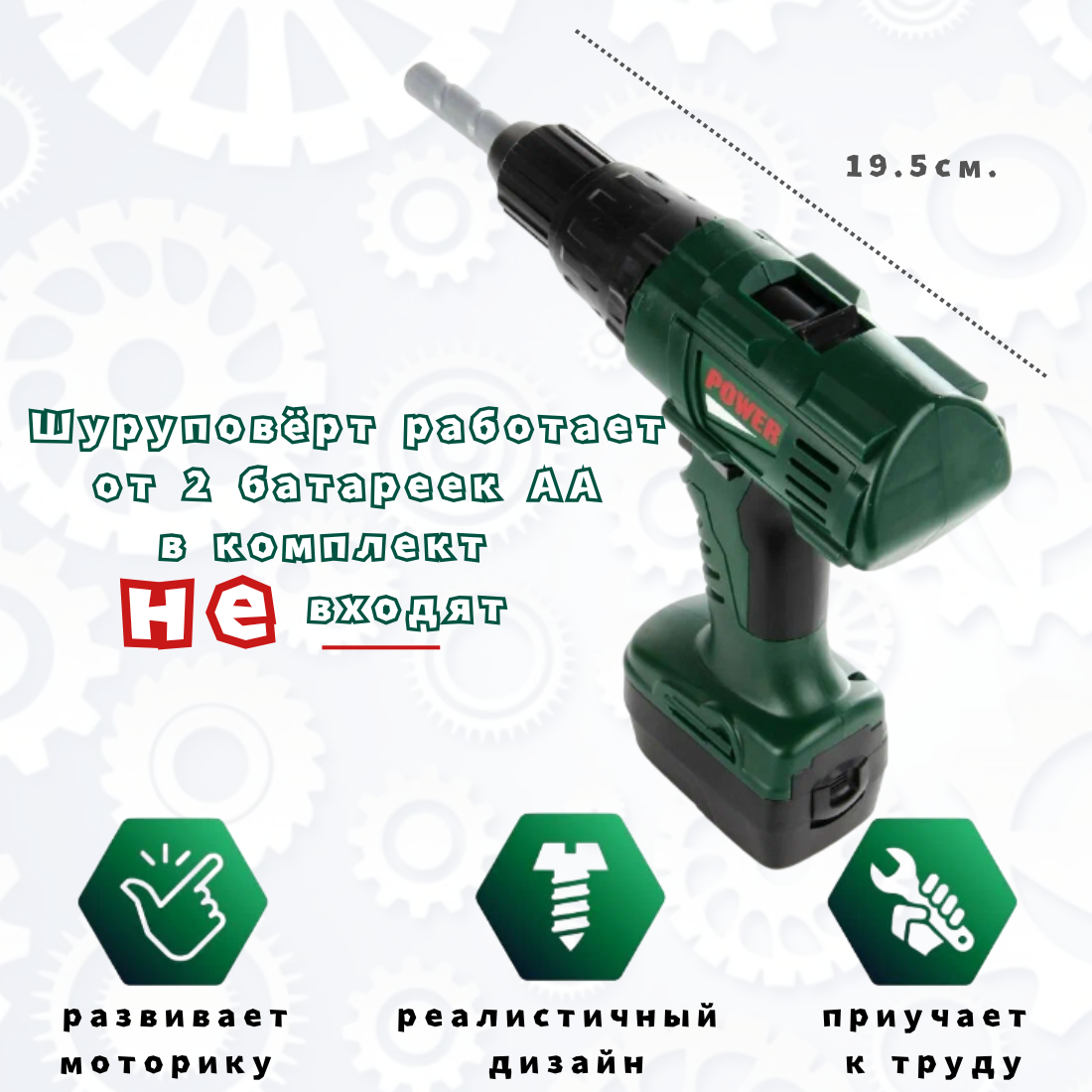Игрушечный Шуруповерт с насадками, для детей от 3 лет, зеленый цвет информация:
