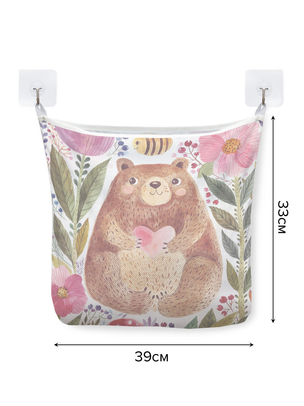 Сетка для игрушек в ванную "Медведь в цветах" органайзер для хранения, крючки, 33x39 см, JoyArty информация: