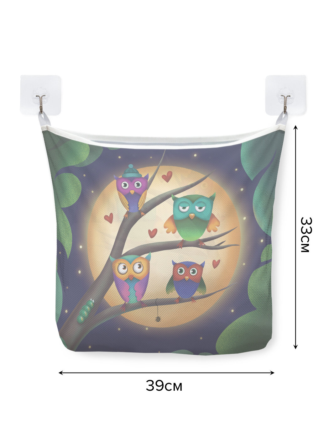 Сетка для игрушек в ванную "Совы ночью" органайзер для хранения, крючки, 33x39 см, JoyArty информация: